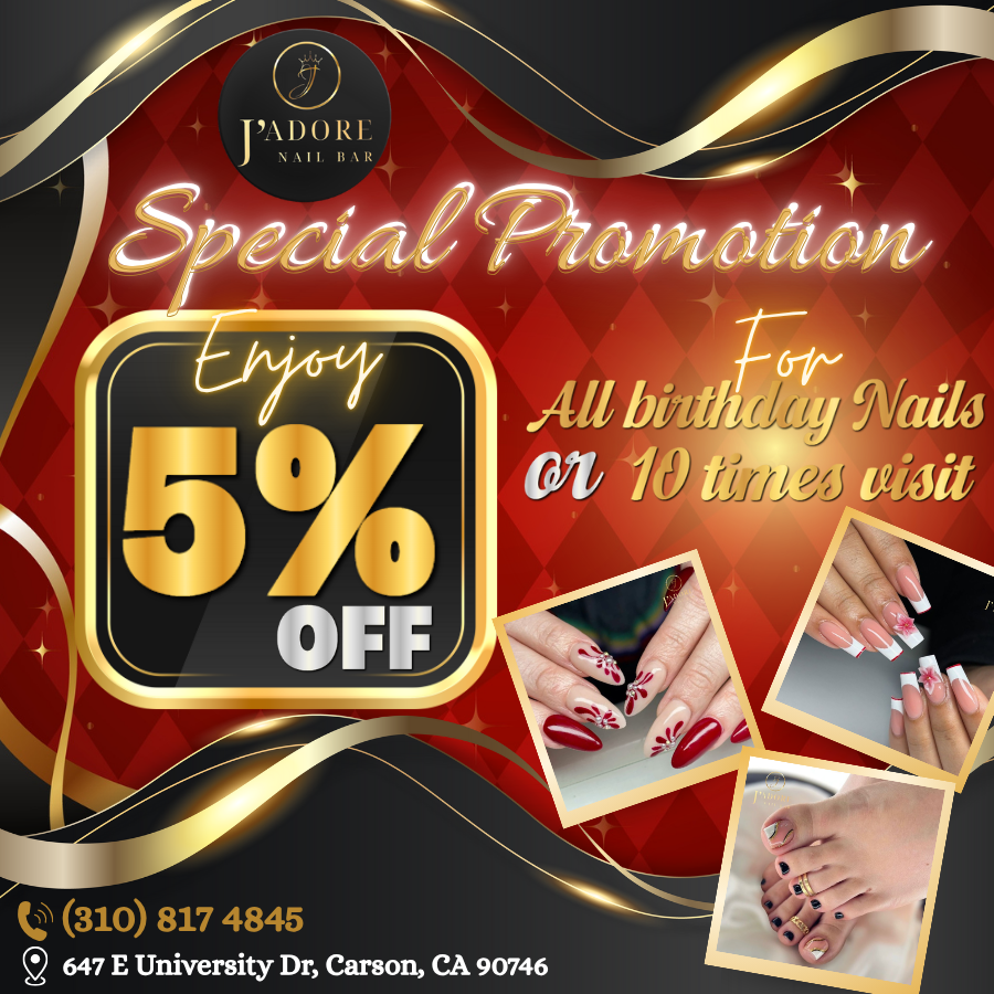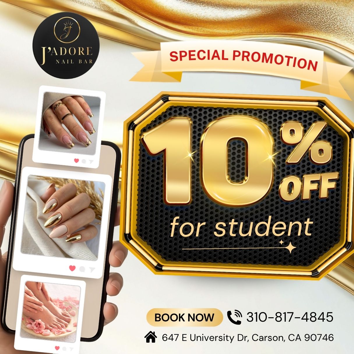 At J'adore Nail Bar in Carson, CA 90746, nail care is more than a service—it’s a ritual of beauty, relaxation, and self-expression. From classic manicures to intricate nail art, every session is tailored to your style, your mood, and your moment!